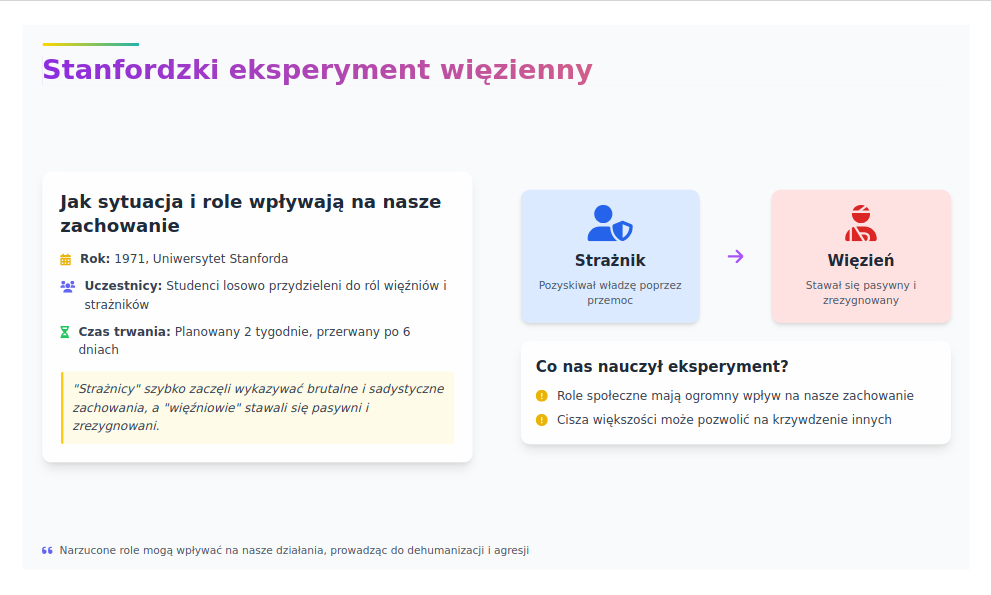 • wpływ presji grupy i autorytetu (eksperymenty Ascha, Milgrama, Stanfordzki),
