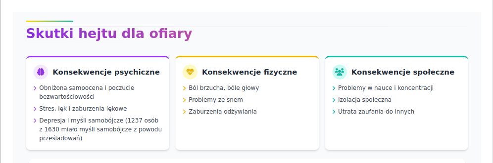 • wcześniejsze doświadczenia przemocy, hejtu lub upokorzenia,