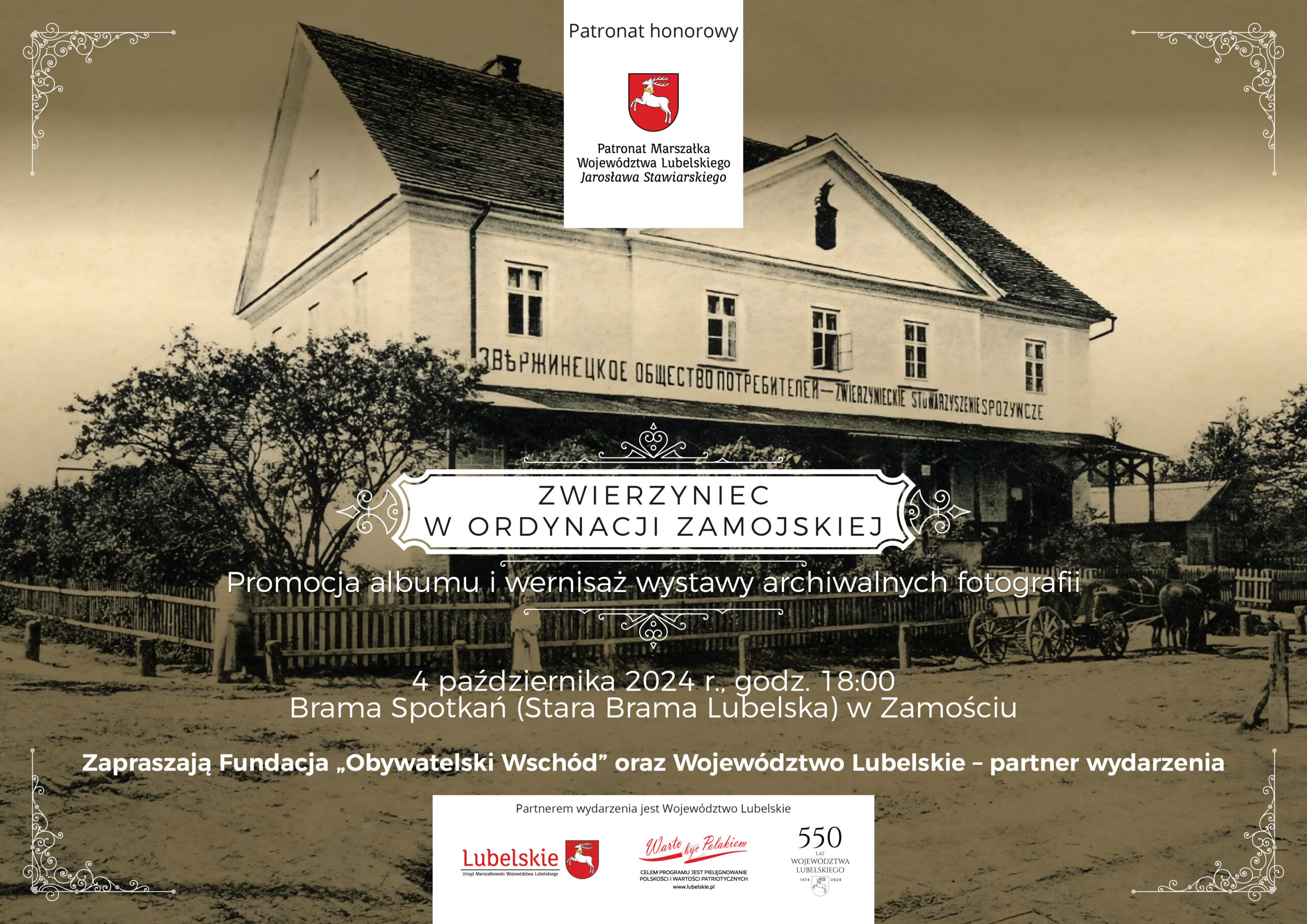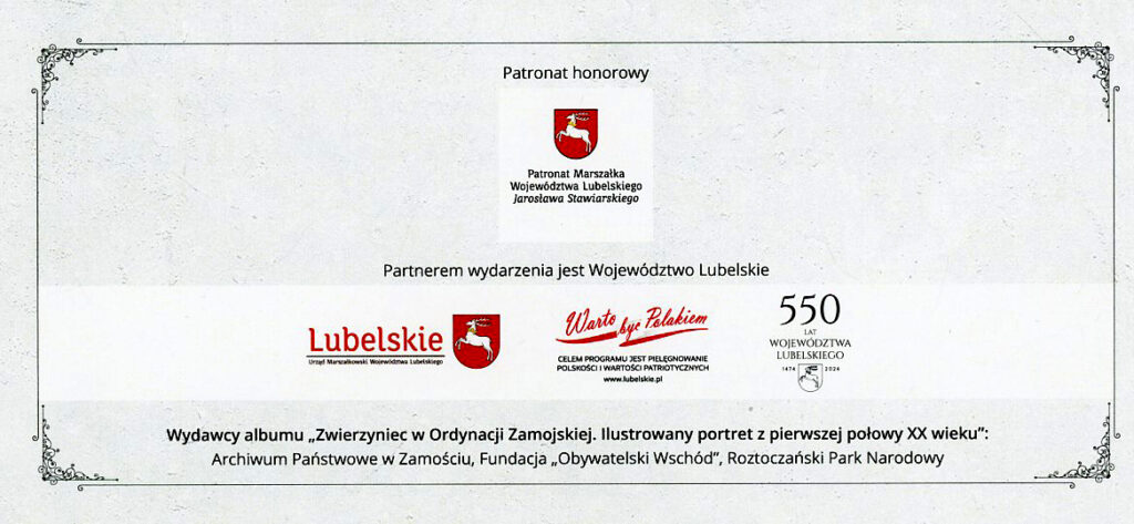 Partnerem wydarzenia pod nazwą „Zwierzyniec w Ordynacji Zamojskiej. Promocja albumu i wernisaż wystawy archiwalnych fotografii” jest Województwo Lubelskie.